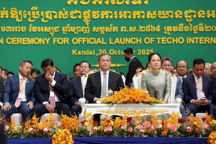 សម្តេចធិបតី ហ៊ុន ម៉ាណែត និងលោកជំទាវបណ្ឌិត អញ្ជើញជាអធិបតីក្នុងពិធីសម្ពោធដាក់ឱ្យប្រើប្រាស់ជាផ្លូវការ «អាកាសយានដ្ឋានអន្តរជាតិតេជោ»