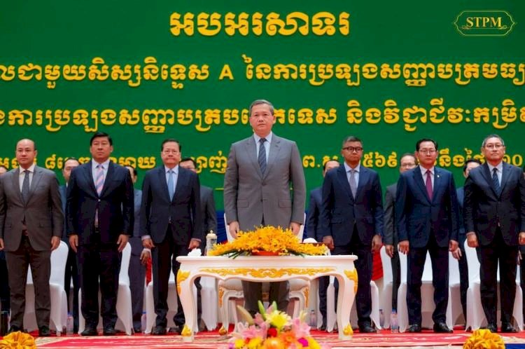 (ភ្នំពេញ)៖ នៅព្រឹកថ្ងៃអង្គារ ទី១០ ខែកុម្ភៈ ឆ្នាំ២០២៦ នេះ សម្តេចមហាបវរធិបតី ហ៊ុន ម៉ាណែត នាយករដ្ឋមន្រ្ដីនៃព្រះរាជាណាចក្រកម្ពុជា បានអញ្ជើញជាអធិបតីភាពដ៏ខ្ពង់ខ្ពស់ក្នុងពិធីជួបសំណេះសំណាលជាមួយសិស្សនិទ្ទេស A សម្រាប់ការប្រឡងសញ្ញាបត្រមធ្យមសិក្សាទុតិយភូមិ (បាក់ឌុប) និងសិស្សជ័យលាភីការប្រឡងសញ្ញាបត្របច្ចេកទេស និងវិជ្ជាជីវៈកម្រិត៣ សម្រាប់ឆ្នាំសិក្សា ២០២៤-២០២៥។