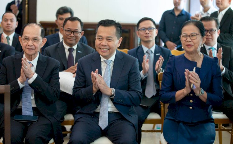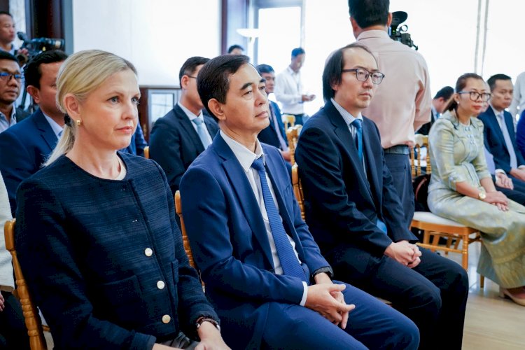 (ភ្នំពេញ)៖ ឯកឧត្តម ហេង សួរ រដ្ឋមន្ត្រីក្រសួងការងារ និងបណ្តុះបណ្តាលវិជ្ជាជីវៈ បានអញ្ជើញធ្វើជាសក្ខីភាពក្នុងពិធីចុះហត្ថលេខាលើគម្រោងស្តីពី «ការលើកកម្ពស់មុខរបរនិងការងារដល់ពលករចំណាកស្រុកត្រឡប់មកវិញ ដែលរងផលប៉ះពាល់ពីជម្លោះព្រំដែន» ដោយឯកឧត្ដម អ៊ូអិណុ អាត់ស៊ូស៊ី (UENO Atsushi) ឯកអគ្គរាជទូតវិសាមញ្ញ និងពេញសមត្ថភាពរបស់ប្រទេសជប៉ុនប្រចាំកម្ពុជា និងលោកស្រី ស៊ាវយៀន ឈាន (Xiaoyan Qian) នាយិកាការិយាល័យអង្គការ ILO ប្រចាំកម្ពុជា ឡាវ និងថៃ នាព្រឹកថ្ងៃទី១៨ ខែកុម្ភៈ ឆ្នាំ២០២៦ នៅស្ថានទូតជប៉ុន។