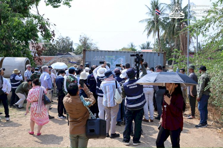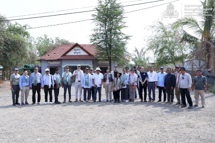 នៅថ្ងៃទី២៣ ខែកុម្ភៈ ឆ្នាំ២០២៦ លោកជំទាវ អ៊ាត សោភា រដ្ឋមន្រ្តីស្តីទីនៃក្រសួងការបរទេស និងសហប្រតិបត្តិការអន្តរជាតិ បានដឹកនាំអង្គទូត និងតំណាងទីភ្នាក់ងារអង្គការអន្តរជាតិប្រចាំកម្ពុជា ចុះពិនិត្យទីតាំង នៅភូមិជោគជ័យ ភូមិព្រៃចាន់ និងតំបន់បឹងត្រកួន ក្នុងខេត្តបន្ទាយមានជ័យ នៃប្រទេសកម្ពុជា ដែលកងទ័ពថៃបានឈ្លានពានកាន់កាប់ដោយអាវុធ ហើយបន្តដាក់ពង្រាយទូកុងតឺន័រ និងបន្លាលួស។