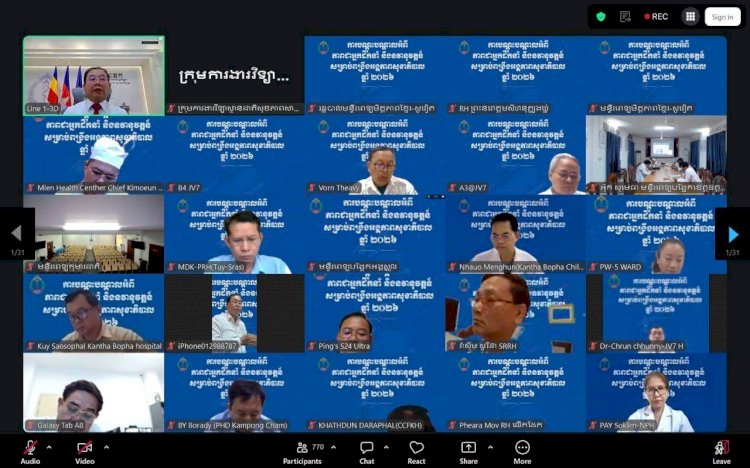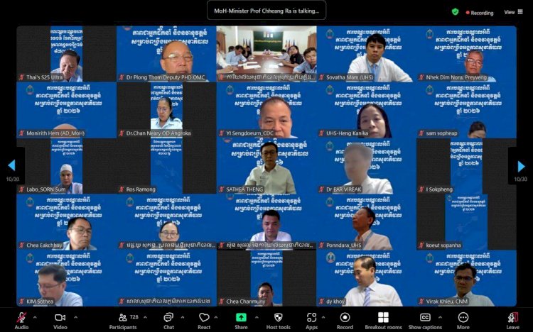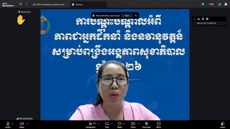 ថ្ងៃអង្គារ៥ កើត ខែពិសាខ ឆ្នាំមមី អដ្ឋស័ក ព.ស.២៥៦៩ ត្រូវនឹងថ្ងៃទី២១ ខែមេសា ឆ្នាំ២០២៦ ចាប់ពីម៉ោង ២:០០នាទីរសៀល ឯកឧត្តមសាស្ត្រាចារ្យ ឈាង រ៉ា រដ្ឋមន្រ្តីក្រសួងសុខាភិបាល បានដឹកនាំវគ្គភាពអ្នកដឹកនាំ និងនវានុវត្តន៍ ដែលមានមន្រ្តីសុខាភិបាលគ្រប់ឋានានុក្រម ក្រោមឱវាទក្រសួងសុខាភិបាល ចូលរួមតាមប្រព័ន្ធវីដេអូសន្និសីទ(Zoom) សរុបចំនួន ៣១៦២ នាក់។