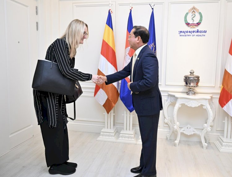 រាជធានីភ្នំពេញ៖ នៅរសៀលថ្ងៃពុធ ៦កើត ខែពិសាខ ឆ្នាំមមី អដ្ឋស័ក ព.ស.២៥៦៩ ត្រូវនឹងថ្ងៃទី២២ ខែមេសា ឆ្នាំ២០២៦ ឯកឧត្តមសាស្ត្រាចារ្យ ឈាង រ៉ា រដ្ឋមន្ត្រីក្រសួងសុខាភិបាល បានអនុញ្ញាតជូនលោកស្រី Sylwia Murray ប្រធានបេសកកម្ម និងក្រុមការងារមូលនិធិសកល(Global Fund Country Team) ចូលជួបសម្តែងការគួរសម និងពិភាក្សាការងារ នៅទីស្តីការក្រសួងសុខាភិបាល។