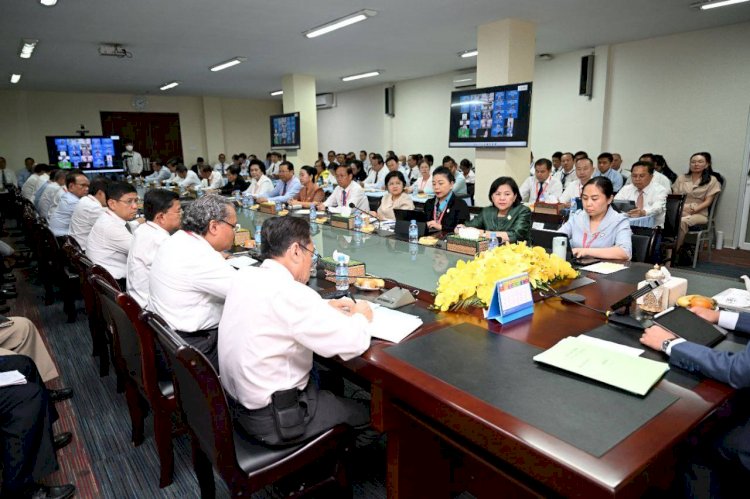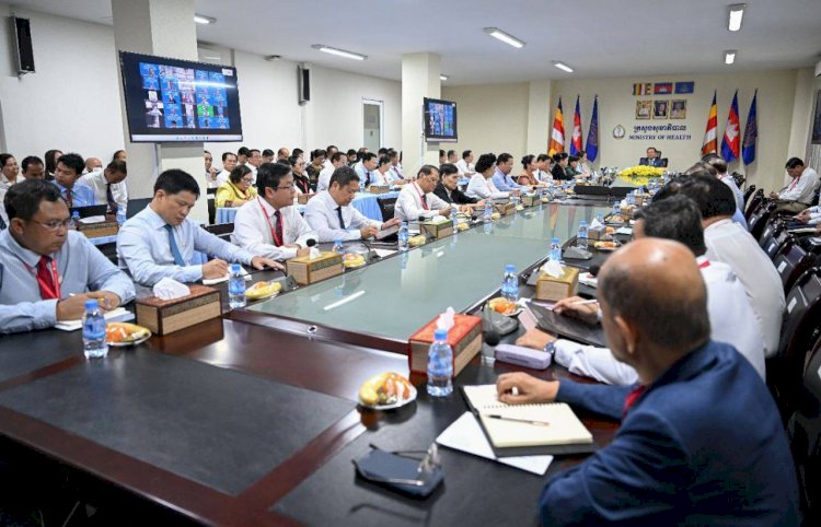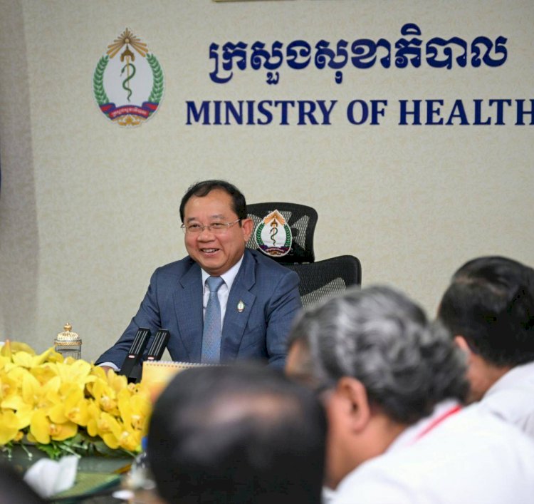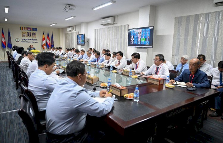 រាជធានីភ្នំពេញ៖ នារសៀលថ្ងៃចន្ទ ៥រោច ខែកត្តិក ឆ្នាំម្សាញ់ សប្តស័ក ព.ស.២៥៦៩ ត្រូវនឹងថ្ងៃទី១០ ខែវិច្ឆិកា ឆ្នាំ២០២៥ នៅទីស្ដីការក្រសួងសុខាភិបាល ឯកឧត្តមសាស្ត្រាចារ្យ ឈាង រ៉ា រដ្ឋមន្ត្រីក្រសួងសុខាភិបាល បានដឹកនាំកិច្ចប្រជុំកម្រិតថ្នាក់ដឹកនាំលើកទី១ នៃខែវិច្ឆិកា ដើម្បីពិនិត្យវឌ្ឍនភាពការងារ និងលើកទិសដៅការងារបន្ត ដែលមានការអញ្ជើញចូលរួមពី ឯកឧត្តម លោកជំទាវ រដ្ឋលេខាធិការ អនុរដ្ឋលេខាធិការ ទីប្រឹក្សាក្រសួង អគ្គនាយក អគ្គនាយករង និងគ្រប់ប្រធានអង្គភាពថ្នាក់កណ្តាលក្រោមឱវាទក្រសួងសុខាភិបាល ប្រធានមន្ទីរសុខាភិបាលរាជធានីភ្នំពេញ និងតាមប្រព័ន្ធ Zoom ប្រធានមន្ទីរសុខាភិបាលខេត្ត។