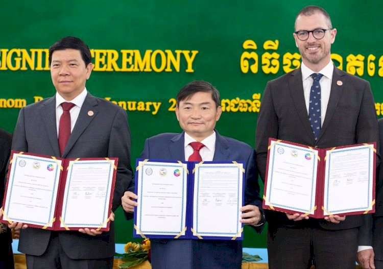 (ភ្នំពេញ)៖ ឯកឧត្ដម ហេង សួរ រដ្ឋមន្ត្រីក្រសួងការងារ និងបណ្ដុះបណ្ដាលវិជ្ជាជីវៈ លោក តាំង សិទ្ធី ប្រធានការិយាល័យតំណាងសភាពាណិជ្ជកម្មកម្ពុជាប្រចាំទីក្រុងម៉ែលប៊ន និងលោក Jeremy Crawford នាយកប្រតិបត្តិសភាពាណិជ្ជកម្មប្រចាំទីក្រុងហ្គីឡុង នៃរដ្ឋវីតូរីយ៉ា ប្រទេសអូស្ត្រាលីបានចុះអនុស្សរណៈនៃការយោគយល់គ្នា (MoU)ស្តីពី «សហប្រតិបត្តិការនៅក្នុងការផ្លាស់ប្តូរជំនាញ ការបណ្ដុះបណ្ដាលសិស្សហ្វឹកហាត់ និងការហ្វឹកហាត់ការងារ» នាព្រឹកថ្ងៃទី២៩ ខែមករា ឆ្នាំ២០២៦ នាទីស្តីការក្រសួង។